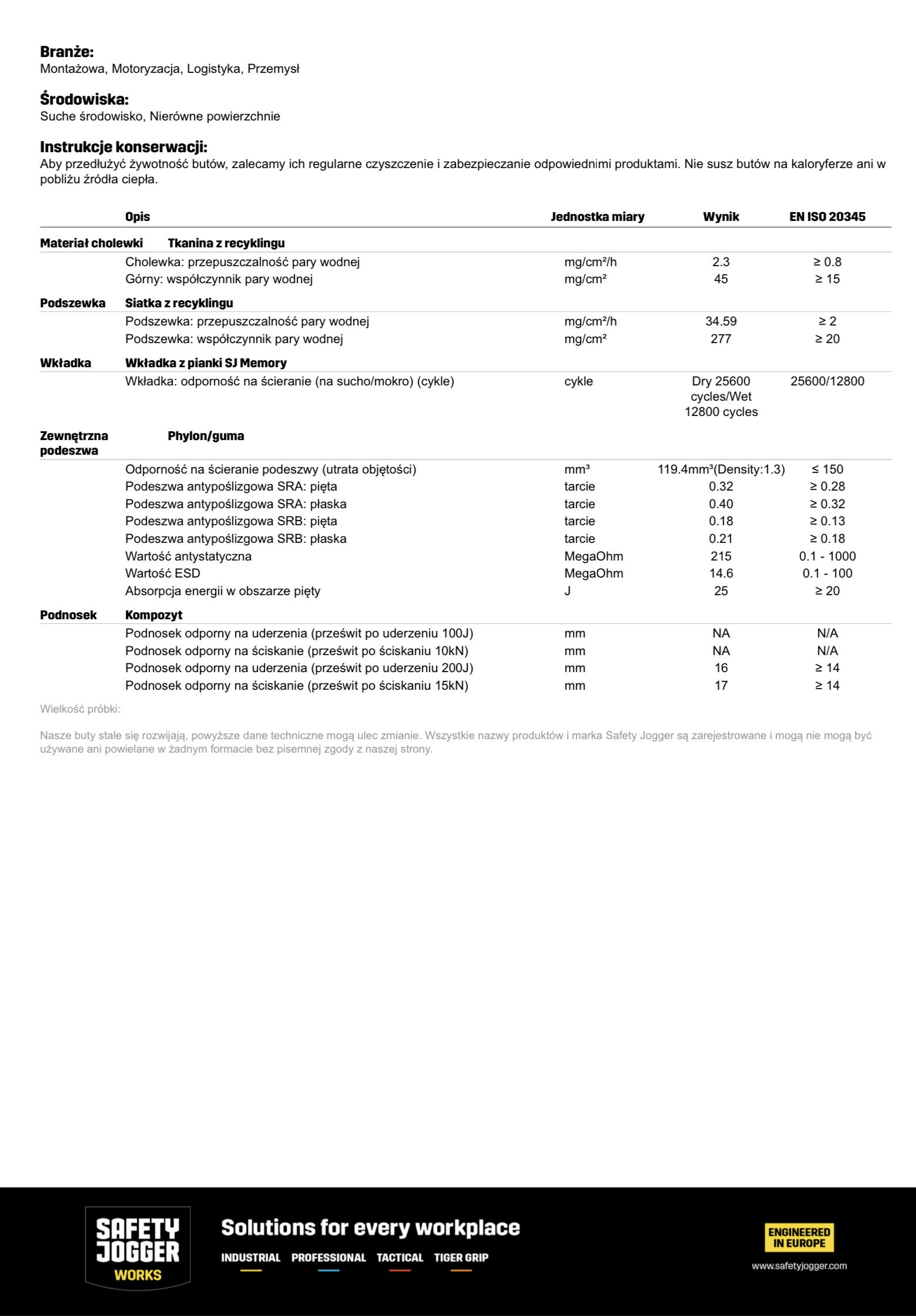Szeroko dopasowane buty ochronne z cholewką wykonaną z materiału pochodzącego z recyklingu