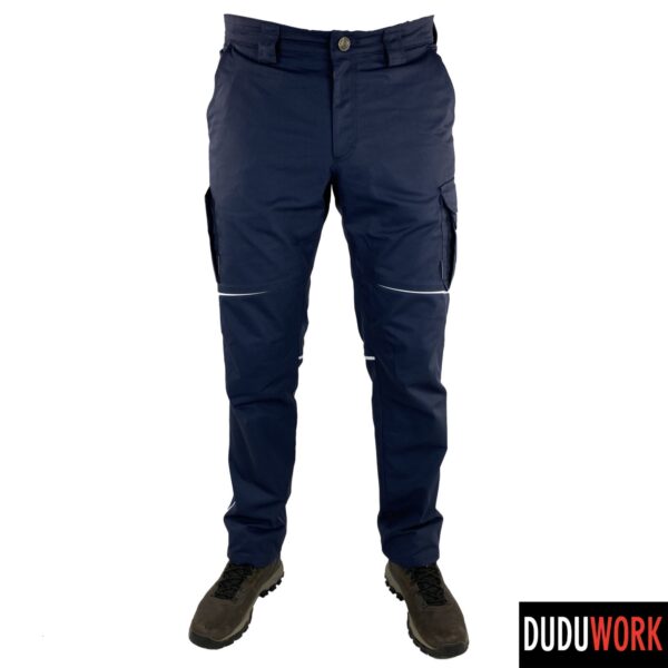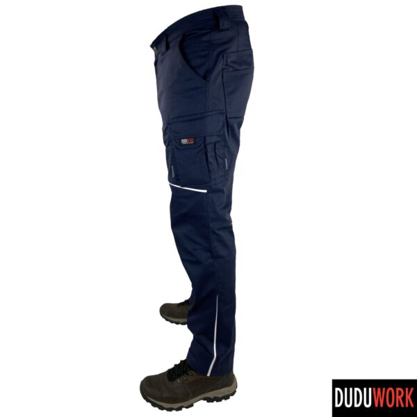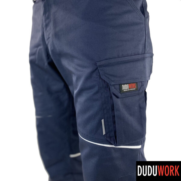 Spodnie wykonane są w 100% w Polsce z wytrzymałej i odpornej na ścieranie tkaniny, o składzie 65% poliester i 35% bawełna i gramaturze 250 g/m2.