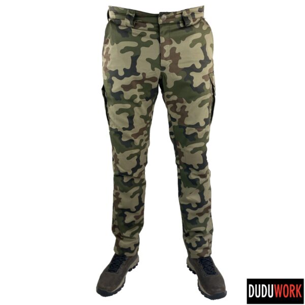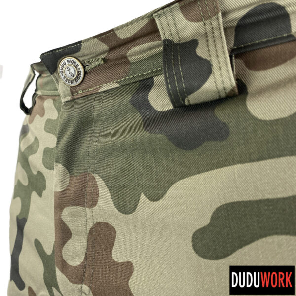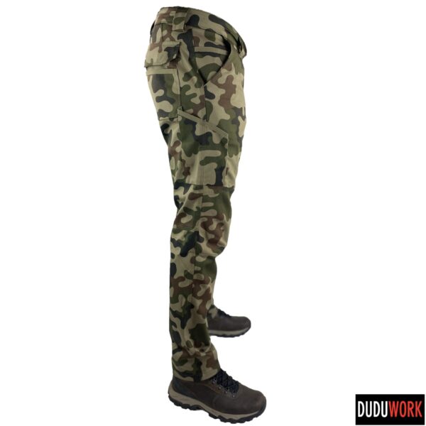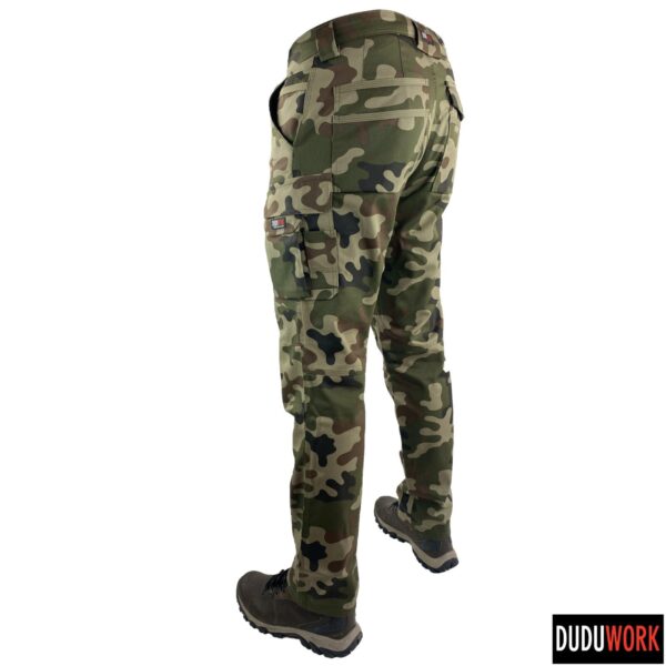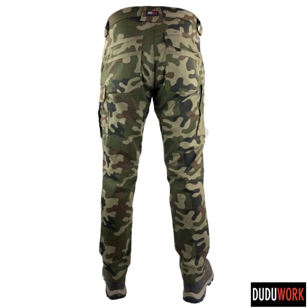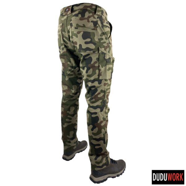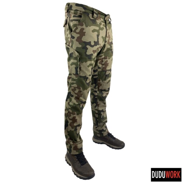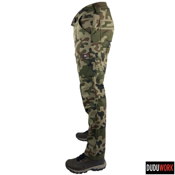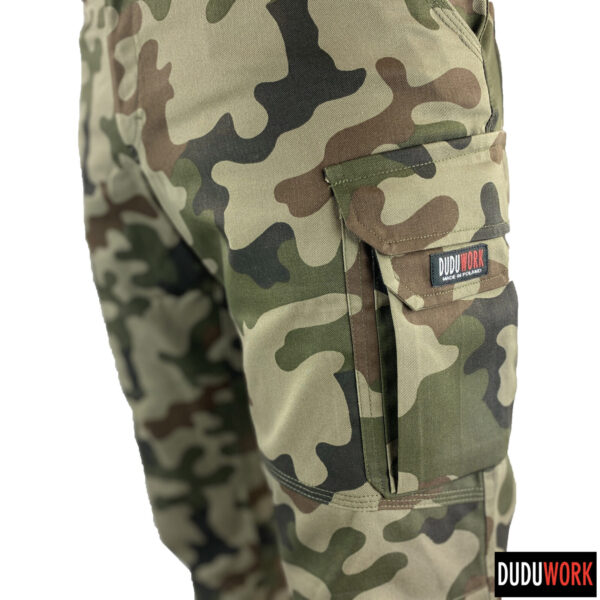 Spodnie wykonane są w 100% w Polsce z wytrzymałej i odpornej na ścieranie tkaniny, o składzie 65% poliester i 35% bawełna i gramaturze 250 g/m2.